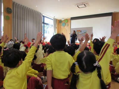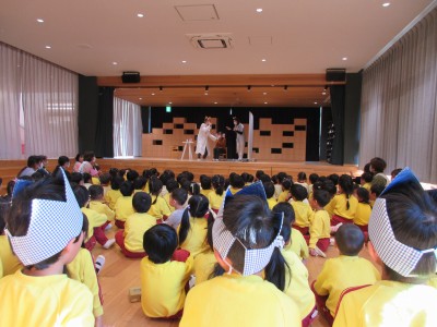今日は11月の誕生会がありました。青組からは5人のお友達が6歳になりました。名前と何歳になったか、それから好きなお友達を大きな声でみんなの前で話す事が出来ました。先生たちの出し物では、「ねこのお医者さん」という寸劇を見ました。先生たちの迫真の演技に子ども達は目を逸らさず、真剣に見ていました。また、誕生会の後は、時間が少し余ったので、そのまま遊戯室で運動遊びをしました。3段と4段の跳び箱と、マットを用意し、各々好きなところに並んで挑戦していました。青組では初めてやったのですが、みんな上手に飛べたり転がったりする事が出来ていて驚きました。怪我なく行えた上に、どの子もいきいきして楽しそうだったので、安全に気をつけながら様々なことに挑戦していきたいと思います。
