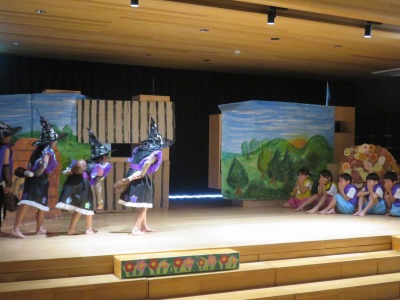 今日は待ちに待った遊戯会当日でした。集合時間になると、元気いっぱいの笑顔で登園してくれた青組さん。少し緊張している姿もありましたが、衣装に着替えるとテンションが上がり、じっとしてはいられない様子でした。本番では、大きな声でセリフを言ったり、大きな声で歌を歌ったり、一生懸命楽器で演奏したりと、練習と同じように青組さんらしくかっこいい姿を見せてくれました。実は、先生も緊張していたのですが、子どもたちの楽しそうな笑顔や普段通りの様子を見て、少し安心しました。「みんなのおかげで、とってもたのしかったよ!ありがとう!」 遊戯会の練習ばかりの日々も終わったので、来週からは園庭や園外で沢山遊ぶ予定です。このお休みでゆっくり休んで、また月曜日、元気な姿を見せてね。お家の方々、衣装の用意や当日の日程調整等、いろいろとご協力ありがとうございました。