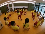 今日は年内最後の日。ということで、青組全員で遊べる「伝言ゲーム」「ジェスチャーゲーム」をしました。5チームに分かれて、先生が出したお題をヒントやジェスチャーで伝えるゲームで、お題は「かえる」「うさぎ」「いのしし」「おにぎり」「アイスクリーム」「ランドセル」等でした。みんなは「緑色で〜」「耳が長くて〜」「お鼻が大きくて〜」というように上手にお題のヒントを出していました。ジェスチャーは食べる様子や作る動きをして頑張っていました。最後の問題では、お題が「風船」で、エアーで風船を膨らましながら一生懸命伝えていました。ゲームが終わった後も、友達同士でやっている子もいました。今日お休みの子も、また保育園で一緒にやろうね。そして、初めにも書いた通り、今日は年内最後の保育園です。今年も1年ありがとうございました。あと数か月、卒園まで子ども達と一緒に楽しく過ごせたらと思っていますので、来年もよろしくお願いします。