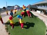 あけましておめでとうございます。あと3カ月ですが、今年もよろしくお願いします。さて、今日は11人の出席だったのでお部屋でゆっくり過ごしました。お絵描きをしたり、紙飛行機を作って飛ばしたり、各々好きなことをして遊びました。また、後半は身体を動かすために、園庭に出て遊びました。走り回って遊んだり、他児と一緒に遊具で遊んだりしていました。久しぶりにみんなの元気な顔が見られて良かったです。明日からも元気に来てね。