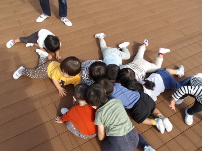 今日はたくさん体を動かしました。前半は室内でダンスをしました。みんなの大好きな「からだだんだん」や、「アンパンマン体操」など、様々な曲を流しました。みんなとても上手でした。後半はテラスに出て、友達や先生と追いかけっこをしたり、先生の「よーい、どん」の合図でかけっこをしたりしました。