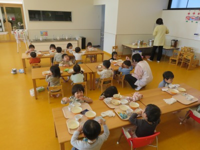 今日は、小谷遊園まで出かけました。友達と手を繋ぎ上手に歩く姿が見られました。公園では、滑り台を繰り返し滑ったり、鉄棒にぶら下がったり先生や友達と一緒に走って体を動かしたりして遊びました。たくさん体を動かしたので、しかっりと給食を食べていました。